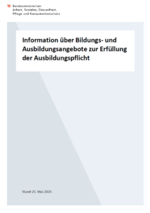 Hier findest du die offizielle Liste der anerkannten Angebote und Maßnahmen, durch deren Absolvierung oder erfolgreichen Abschluss du die Ausbildungspflicht erfüllen kannst: Angebotsliste